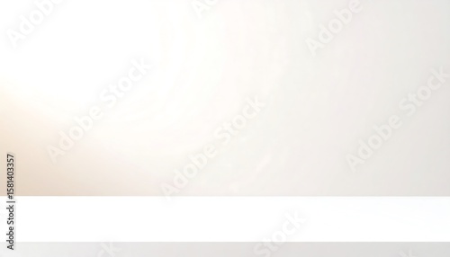 © iya, Obraz premium Plain white shelf against a light beige wall