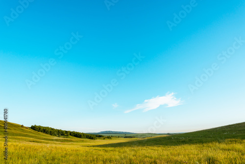 Obraz premium Plain, yellow field and hills, beautiful scenery.