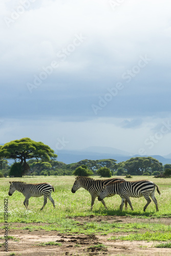 Fototapeta premium Plains or common zebra (equus quagga) on open grassland, Amboseli National Park