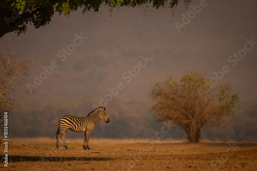 © Nick Dale, Obraz premium Plains zebra stands in profile near tree