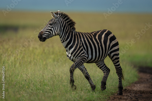 © Nick Dale, Fototapeta premium Plains zebra trots across track in sun