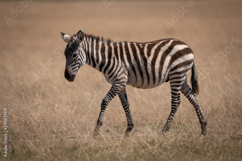 © Nick Dale, Naklejka premium Plains zebra walking alone on grassy plain