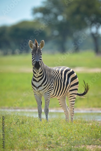 © Nick Dale, Fototapeta premium Plains zebra watches camera from grass clearing