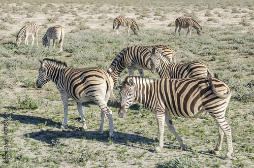 Naklejka premium Plains zebras (Equus quagga) grazing in Etosha national park