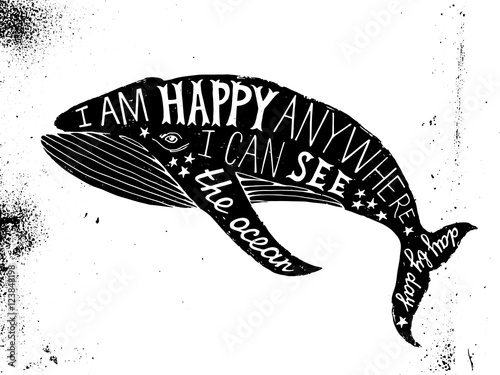 © Marina Gorskaya, Naklejka premium Plakat typograficzny z wielorybem
