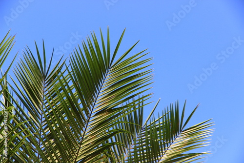 © Parichart, Fototapeta premium plam tree or coconut branch with bluesky background.