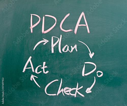 © zorabc, Obraz premium Plan Do Check Act diagram written on blackboard