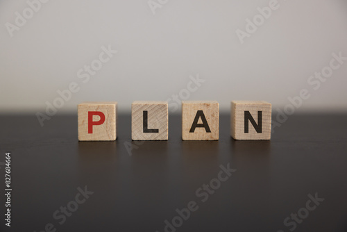 © Philip, Obraz premium Plan word written on wooden cubes.