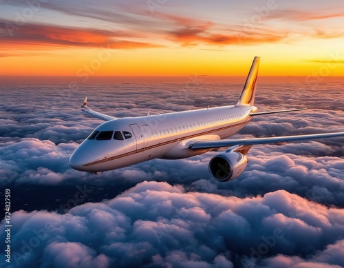 © Ирина Самойлова, Fototapeta premium plane flies above clouds at sunset.