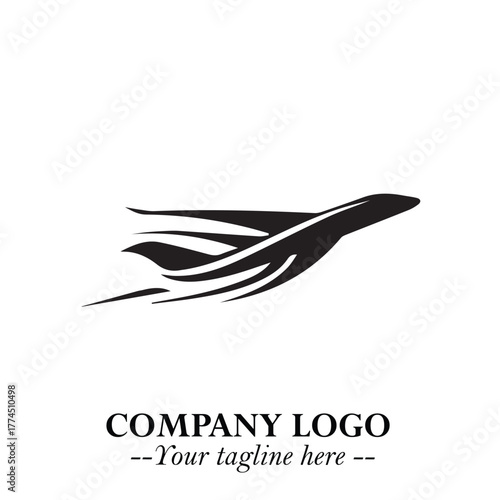 © Fajar, Obraz premium Plane Flying Fast Logo Symbol in Black on the White Background with Dynamic Aviation Design