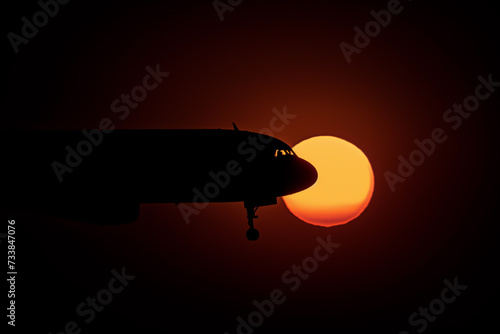 Fototapeta premium Plane gracefully soars through the sunset sky, AI-generated.