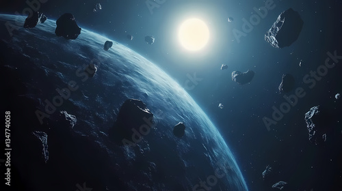 Naklejka premium Planet and Asteroids Floating in Space