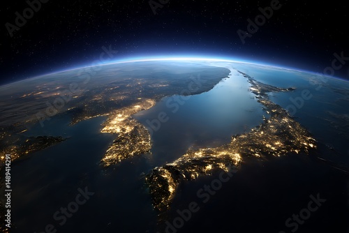 Obraz premium Planet Earth at Night with Korea and Japan Showing City Lights from Space