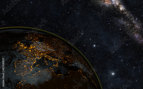 Obraz premium Planet earth at night with space background