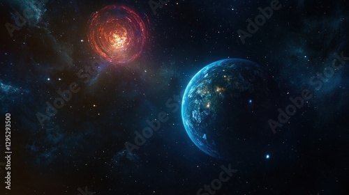 © malayeka, Naklejka premium Planet Earth, cosmic explosion, outer space, vibrant nebula