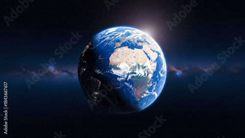 © Muzaddid, Fototapeta premium Planet Earth Floating in Deep Space with Starry Background
