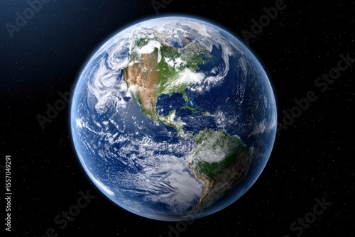 © AHMAD TAUFK, Obraz premium Planet Earth floats in space The continents are visible through a layer of clouds