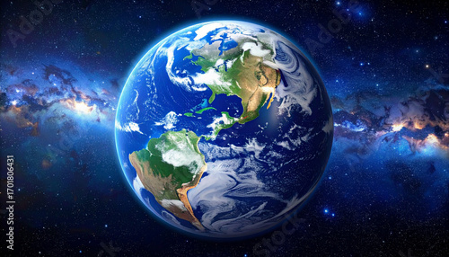 Fototapeta premium Planet Earth from Space on Cosmic Galaxy Background