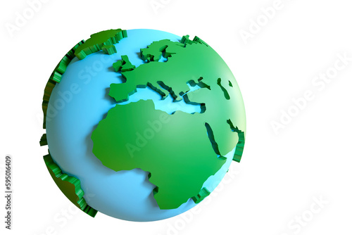 © Grispb, Naklejka premium Planet earth. Globe with volumetric continents. World map view from space. Planet earth isolated on white. Globe with view of Africa and Europe. Cartoon style. Planet earth icon. 3d image