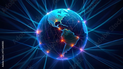 © Monowara, Fototapeta premium Planet Earth glowing in abstract space background with digital globe