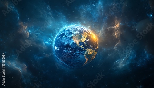 Obraz premium Planet Earth glowing on a digital background of global networks