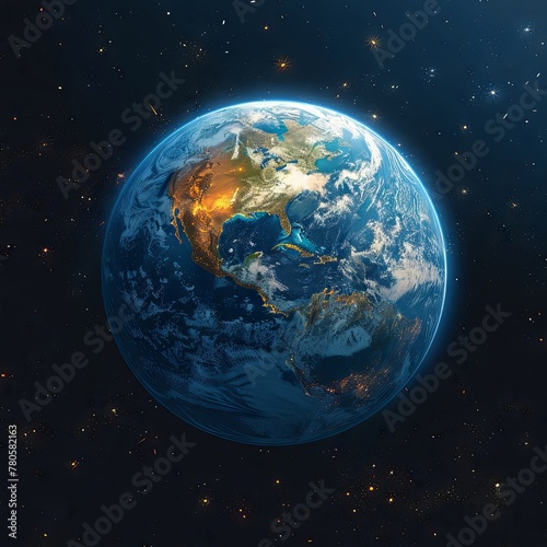 © Katerryna.R, Obraz premium Planet earth illustration in outer space. Generative AI