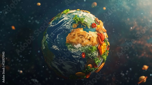 Naklejka premium Planet earth made of fast food. View from space to earth.
