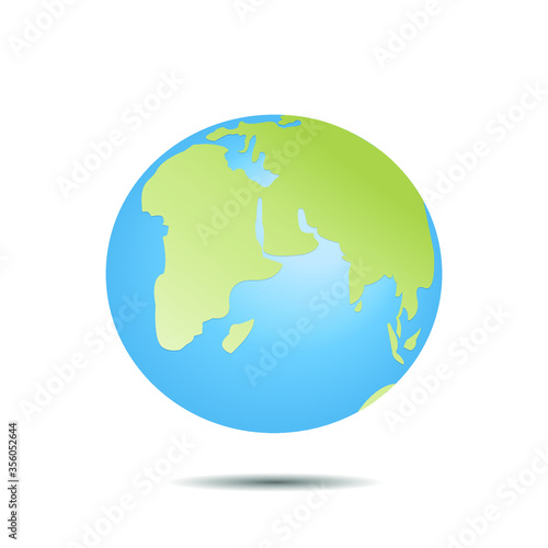 © Veronika, Fototapeta premium Planet earth, mainland, ocean, Africa, Asia, India. Vector illustration, flat cartoon design, eps 10.