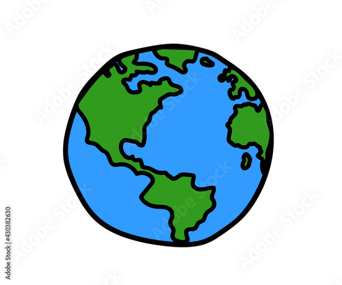 © alina_polina, Naklejka premium Planet Earth on a white background. Environment protection. Cartoon. Vector illustration.