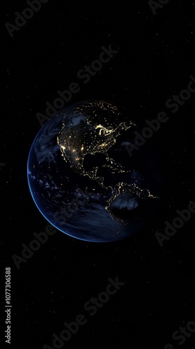 © Viktoriia, Naklejka premium Planet earth rotating in space showing north and central america at night