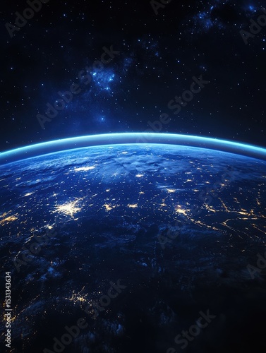 © Johannes, Obraz premium Planet Earth's horizon with glowing blue light, seen from space at night.