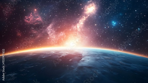 © sungedi, Fototapeta premium Planet Earth Sunrise Cosmic Nebula Starscape
