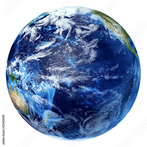 © Pixelchaos, Naklejka premium Planet earth with some clouds. Pacific ocean view.
