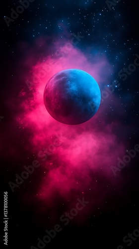 © Marwan, Fototapeta premium Planet in Nebula Space Scene with Pink and Blue Light Effect