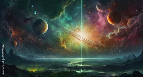 © VitorCosta, Fototapeta premium planet in space, big light, strange clows