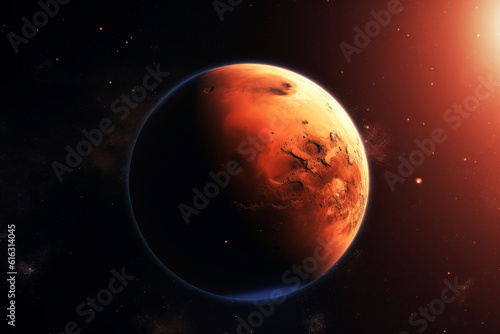 © Artsiom P, Obraz premium Planet Mars on a dark background. Generative AI