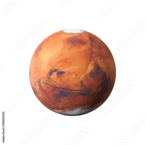 © Anasaiimages, Fototapeta premium Planet Mars surface texture with reddish rocky terrain and visible polar ice formations in deep space