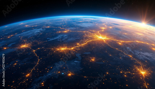 Obraz premium Planeta Tierra con luces de la ciudad en el espacio