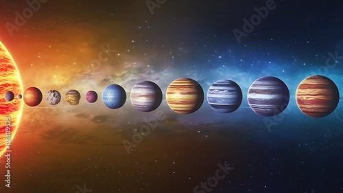Fototapeta premium Planetary Alignment on January 25, 2025 – Solar System Planets Align in a Straight Line, January 25 planetary event, solar system alignment, planets in a straight line