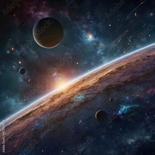 Obraz premium Planetary Cluster with Celestial Spiral in Galactic Cosmos