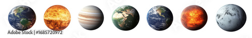 Fototapeta premium Planetary Evolution Sequence Earth, Lava, Jupiter, Isolated on Transparent...