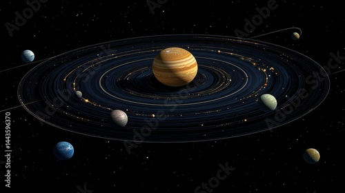 © Suprapti, Obraz premium Planetary System Orbiting A Gas Giant Star