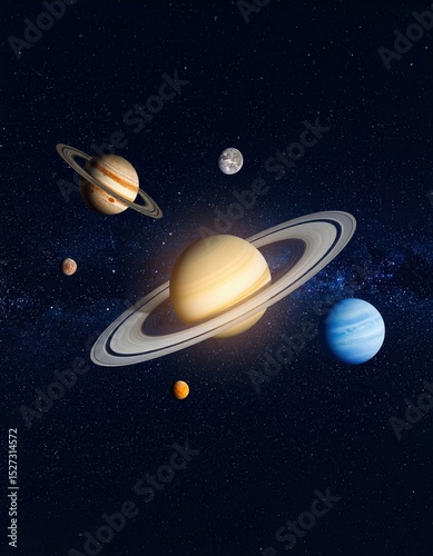 © DWIJ, Fototapeta premium Planets in space saturn jupiter neptune astronomy universe cosmos celestial art