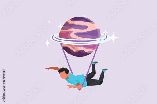 © klikline, Obraz premium Planets, stars, asteroids, and comets in outer space. Galaxy concept. Colored flat vector illustration isolated.
