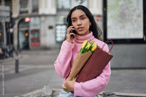 © Asier, Fototapeta premium Planning a romantic surprise dinner with tulips and wine.