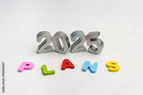 © Raka Bayuwana, Naklejka premium 2025 plans concept alphabet 3D colorful text on white background