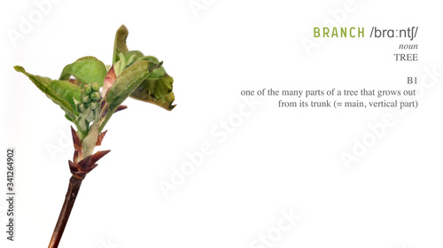 © Elena, Obraz premium Plant branch with buds and small leaves isolated on white background