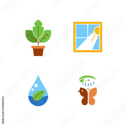 © katasandimasuk, Obraz premium Plant care essentials sunlight water and butterfly with rain for growth.