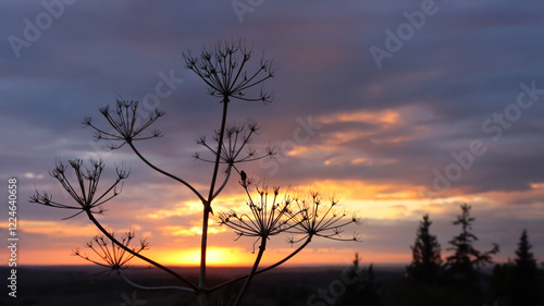 © tomertu, Fototapeta premium plant detail in the forest at sunset time.