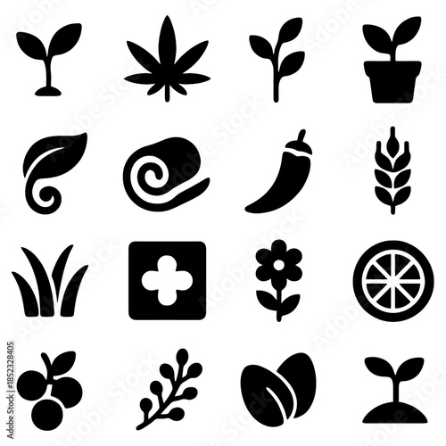 Fototapeta premium Plant Icons Collection: A collection of diverse plant icons in a simple graphic. this illustration showcases the beauty and essential elements of the natural world.